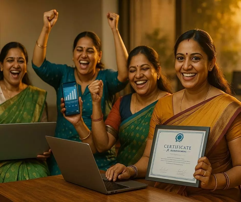 Anna University, IIT Madras மற்றும் JKKN போன்ற நிறுவனங்கள் women entrepreneurship programs conduct பண்ணுகின்றன. Learning Facilitators மற்றும் Learners-க்கு AI tools training provide பண்ணி practical business ideas implement பண்ண help பண்ணுகின்றன.
