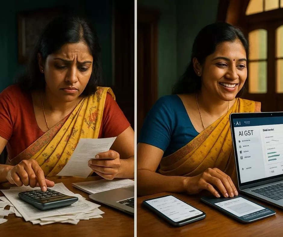 GST filing இனி பெரிய பிரச்சனை இல்லை! AI tools-ன் மூலம் தமிழ்நாட்டு வணிகர்கள் time save பண்ணி, accuracy improve பண்ணி, stress இல்லாமல் business-ல் focus பண்ணலாம்.