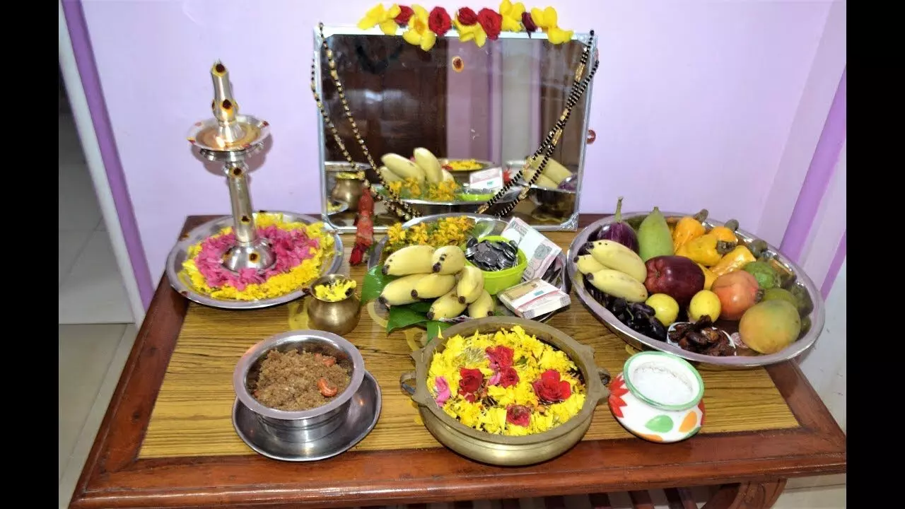 பஞ்சாங்க பூஜை: பஞ்சாங்கத்தை (பாரம்பரிய நாட்காட்டி) வைத்து அதற்கு சந்தனம், குங்குமம் வைத்து வணங்கவும்.
