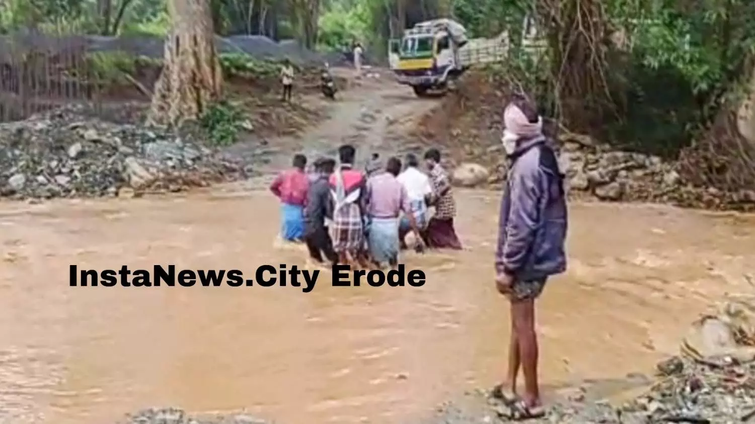 சத்தியமங்கலம் அடுத்த கடம்பூர் அருகே உள்ள சக்கரப்பள்ளம் என்ற பகுதியில் காட்டாற்று வெள்ளம் தரைப்பாலத்தை மூழ்கி சென்றது. இதன் காரணமாக குரும்பூர் உள்பட பல்வேறு மலை கிராமங்கள் துண்டிக்கப்பட்டது. அந்த வழியாக வந்த பெயர்ந்து மற்றும் வாகனங்கள் பாலத்தை கடக்க முடியவில்லை. சுமார் 5 மணி நேரம் காட்டாற்று வெள்ளம் கரை புரண்டு ஓடியது.