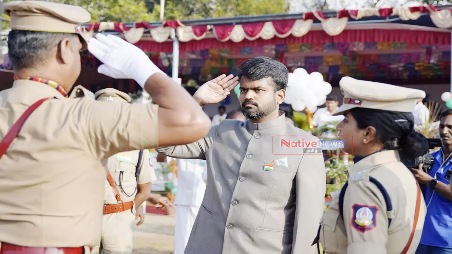 ஈரோடு ஆனைக்கல்பாளையத்தில் நடைபெற்ற குடியரசு தின விழாவில் மாவட்ட ஆட்சியர் ராஜ கோபால் சுன்கரா தேசியக் கொடியினை ஏற்றி வைத்து மரியாதை செலுத்தினார்.