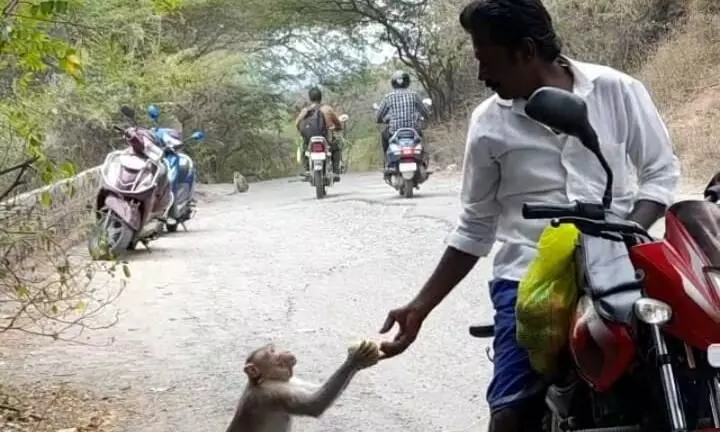 disappearing of foraging nature-மலைப்பகுதிகளில், குரங்குகளுக்கு உணவளிக்கும் தொழிலாளிக்கு பாராட்டு