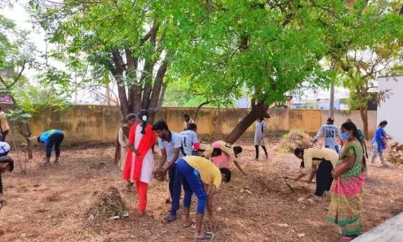 மாணவ, மாணவியர் கல்லூரி வளாகத்தை தூய்மை படுத்தினர். இதில் பேராசிரியர்கள் அருணாசலம், வைரமணி, தீபா, சுமதி, தங்கவேல், சரளா, மேபல், ஹெலன், மனோகரன் உள்பட பலர் பங்கேற்றனர்.
