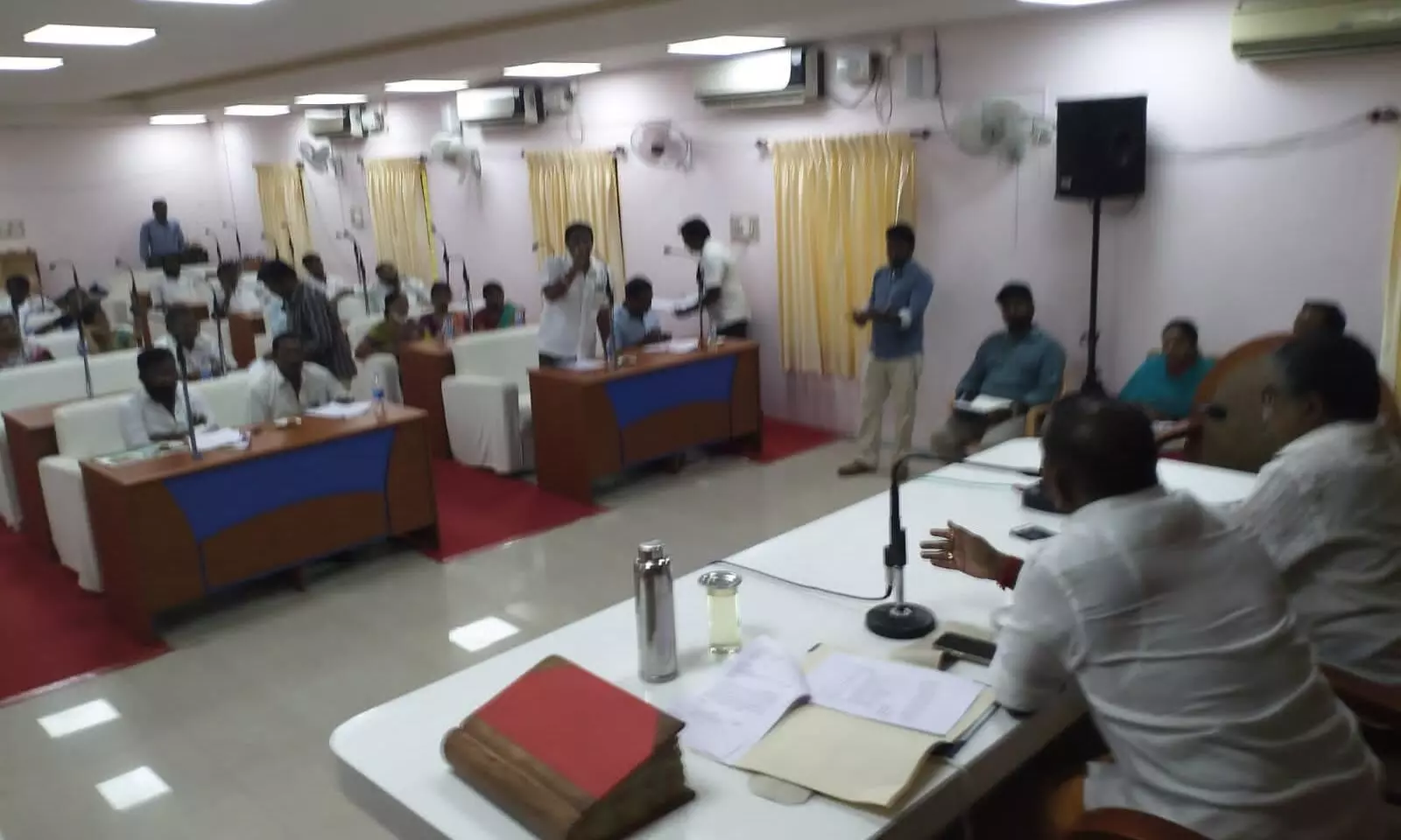 நகராட்சி தலைவர் விஜய்கண்ணன் : எந்த கட்சி பற்றியும் இங்கு பேச வேண்டாம். மக்கள் நலன் மட்டும் பேசுங்கள் எனப் பேசினார்.