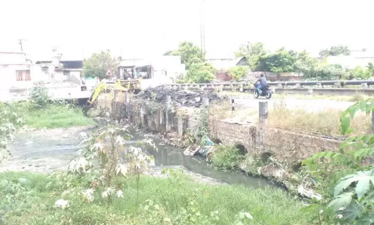 கத்தேரி பகுதியில் இருந்து வரும் இந்த கழிவுநீர் பள்ளத்தில் ஆங்காங்கே குப்பைகள், இறைச்சி கழிவுகள் கொட்டப்படுகிறது. மேலும் மழைநீரில் அடித்து வரப்படும் செடி,கொடிகள் உள்ளிட்ட குப்பைகள் இந்த குழாய் முகப்பில் அடைத்துக் கொள்கிறது. இதனால் கழிவுநீர் செல்ல முடியாமல் தேக்கமடைந்து, கடும் துர்நாற்றம் வீசி வந்தது.