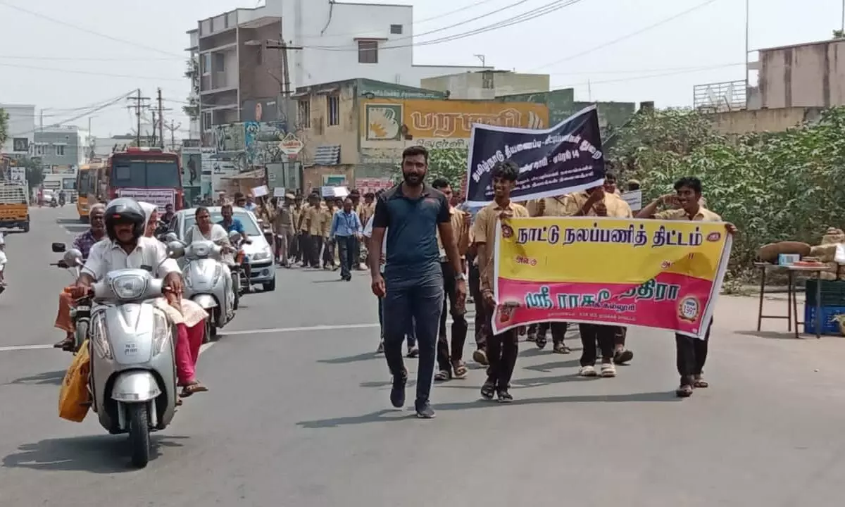 பேரணியை நகராட்சி ஆணையாளர் (பொ) ராஜேந்திரன் கொடியசைத்து துவக்கி வைத்தார். ராகவேந்திரா பாலிடெக்னிக் கல்லூரி மாணவர்கள் விழிப்புணர்வு பதாதைகள் ஏந்தியவாறும், கோஷங்கள் போட்டவாறும், துண்டு பிரசுரங்கள் விநியோகம் செய்தவாறும் பேரணியில் சென்றனர். கல்லூரி முதல்வர் விஜயகுமார் உள்ளிட்ட பலர் பங்கேற்றனர்.
