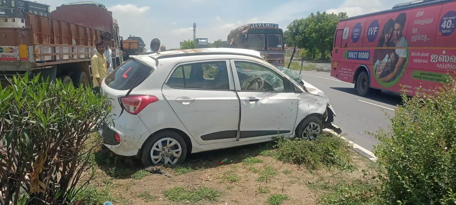 குமாரபாளையம் அருகே டிவைடர் மீது ஏறி நின்ற கார்