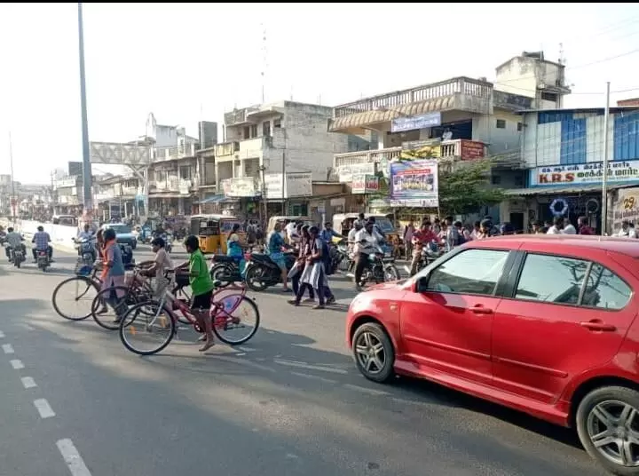 மரண பயத்துடன் சாலையை கடக்கும் மாணவ, மாணவியர்