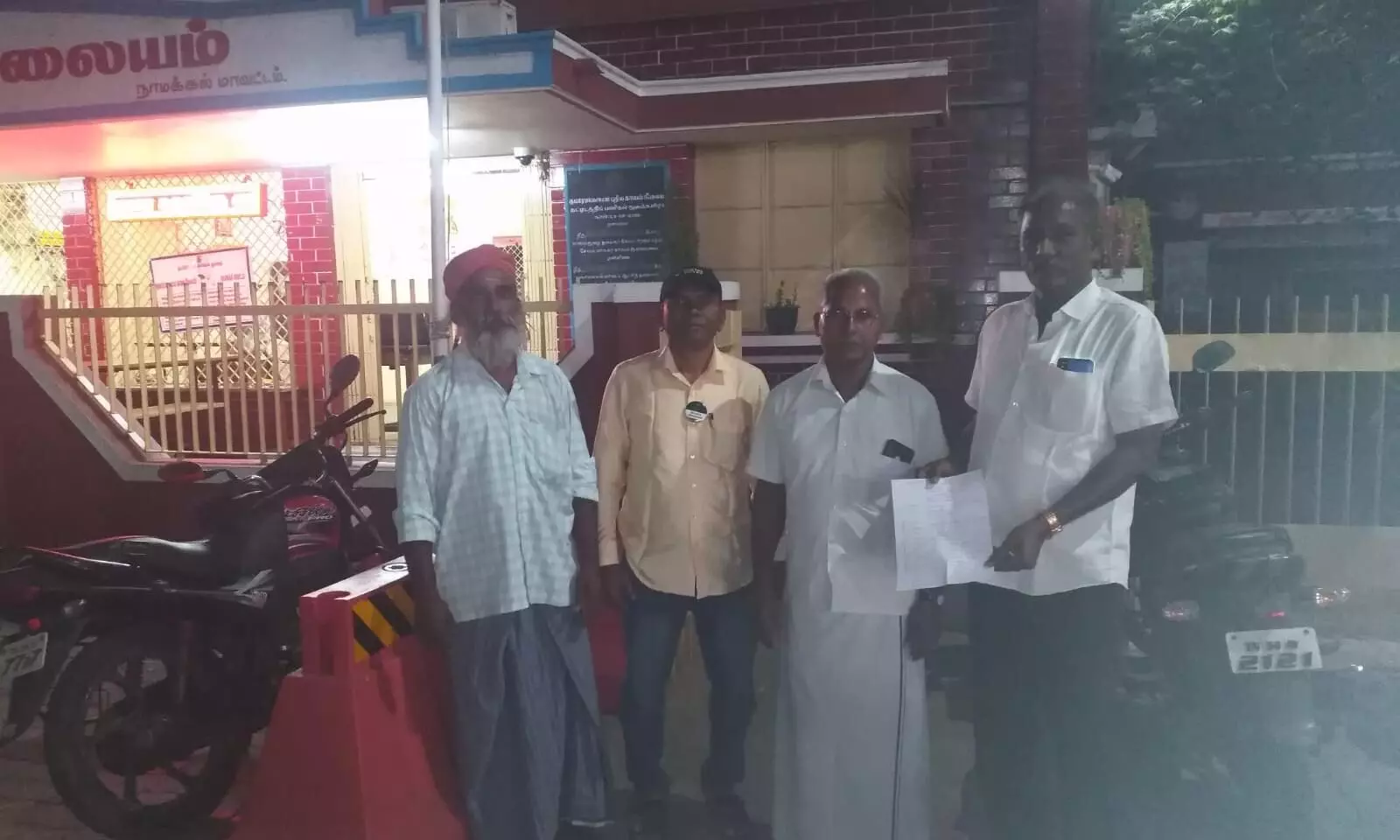 நாமக்கல் மாவட்டம், குமாரபாளையம் அருகே கத்தேரி பிரிவு, சுபாஷ் நகர் பகுதியில் சில நபர்கள் அங்குள்ள புறம்போக்கு நிலத்தை ஆக்கிரமிப்பு செய்ய முற்பட்டதாக கூறப்படுகிறது. இது சம்பந்தமாக ஆக்கிரமிப்பு நபர்கள் ஆள் வைத்து மிரட்டி வருவதாகவும் கூறப்படுகிறது. இதனை கண்டித்து அப்பகுதி மக்கள் குமாரபாளையம் போலீசில் புகார் மனு கொடுத்தனர்.
