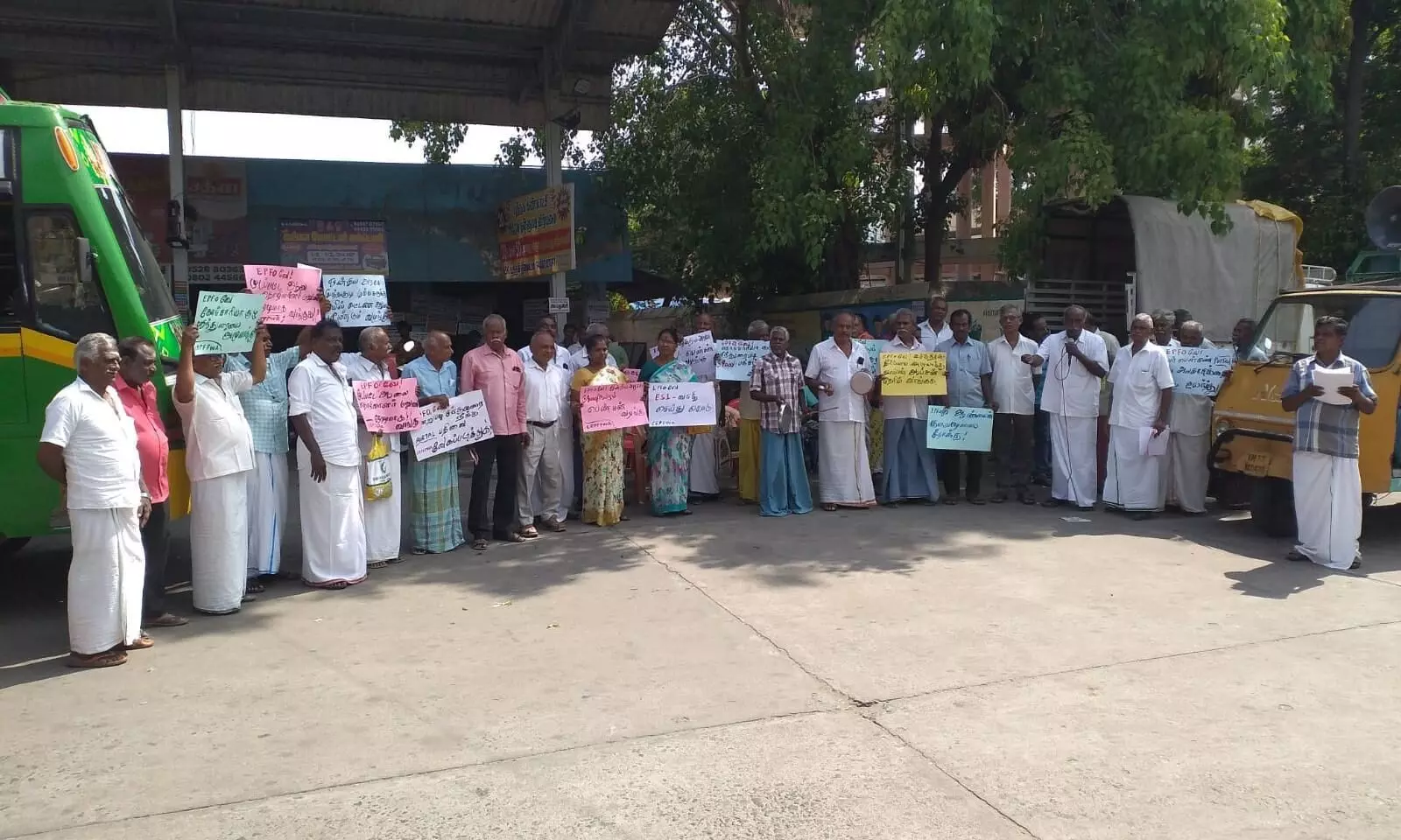 குமாரபாளையம் பேருந்துநிலையம் அருகே பென்சனர் நல சங்கம் சார்பில் போராட்டம்