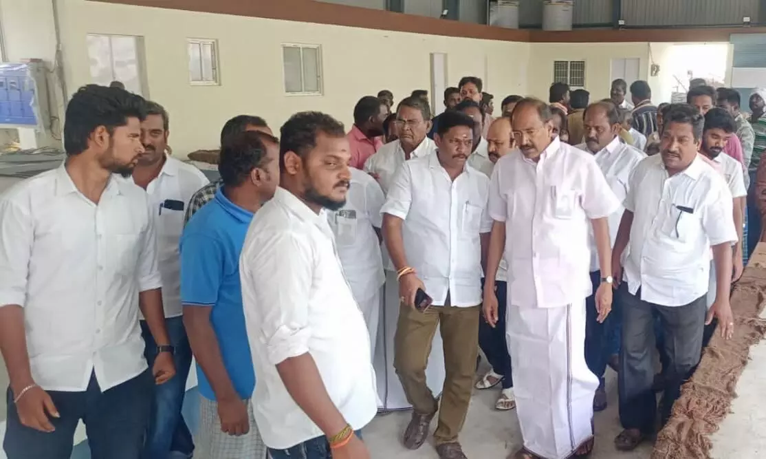 உள்ளூர் வியாபாரிகளுக்கு கடை வைக்க அனுமதி மறுத்தால் அதிமுக சார்பில் போராட்டம் நடத்த நேரிடும் என முன்னாள் அமைச்சர் தங்கமணி தெரிவித்தார்.