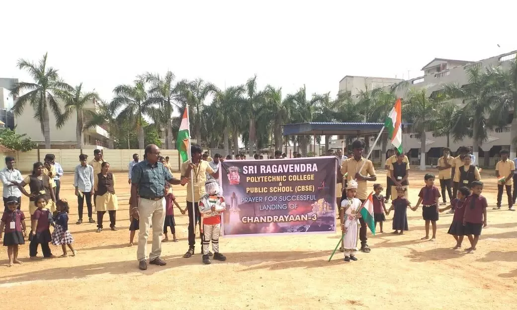 சந்திராயன் 3 இனிதே நிலவில் இறங்க ராகவேந்திரா கல்வி நிறுவன மாணவர்கள் பிரார்த்தனை