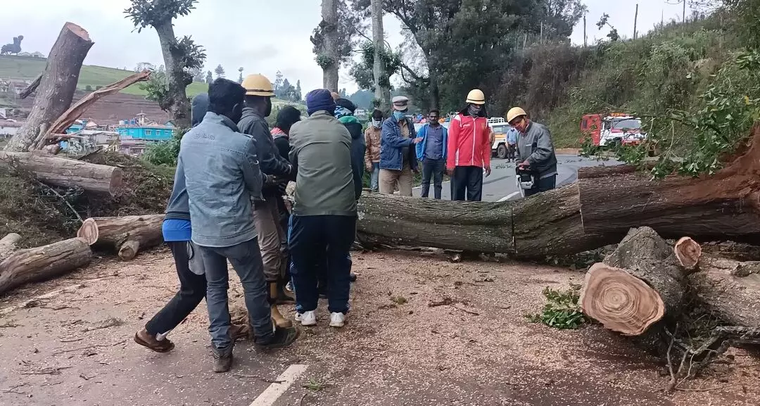 உதகை தேசிய நெடுஞ்சாலையில் விழுந்த 100 அடி மரம்