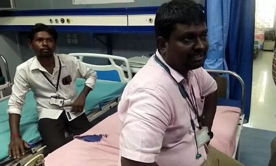 தூத்துக்குடி அரசு மருத்துவமனையில் சிகிச்சை பெற்று வரும் வங்கி மேலாளர் திவாகர், ஊழியர் ஈஸ்வரன்.