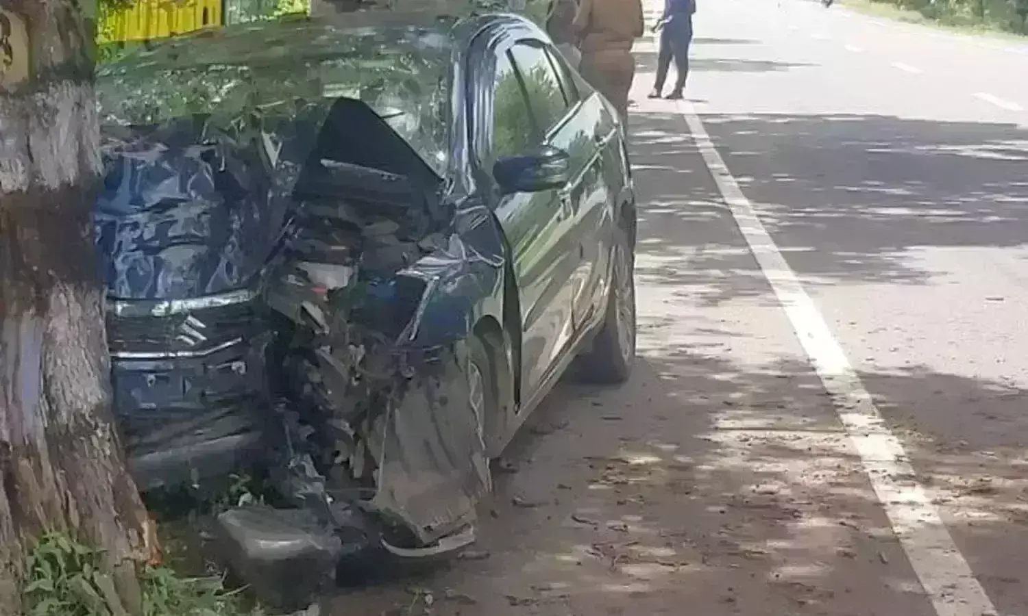 காங்கயம் அருகில் மரத்தில் மோதி நொறுங்கிய கார்.