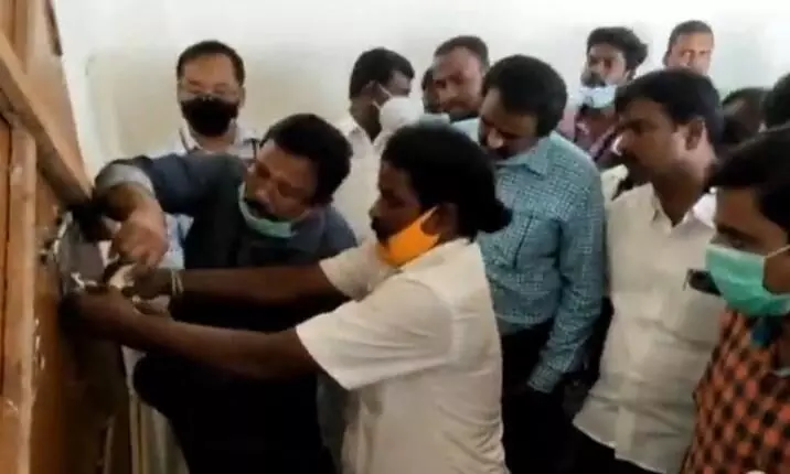 வேப்பம்பட்டில் வாக்குப்பதிவு பெட்டிகள் மாவட்ட தேர்தல் அதிகாரி முன்னிலையில் சீல் வைத்து பூட்டப்பட்டது.
