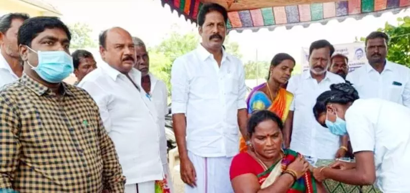 விழுப்புரம் மாவட்டம், மேல்மலையனூர் பகுதியில் தடுப்பூசி முகாமை ஒன்றிய சேர்மன் தொடங்கி வைத்தார்.